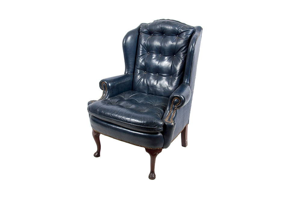 Blue Leather Wingback Chair : Berkline Blue Leather-Textured Wingback Recliner | EBTH / A bonded leather recliner chair in blue.. Vintage blue leather chesterfield wing back chair. Shop for leather wingback chair online at target. The wonderful part about a wingback chair is that it doesn't need to match your other interior design; The piece rises up on cabriole legs with carved knees and claw with ball feet. The perfect wing chair for the den or the library.